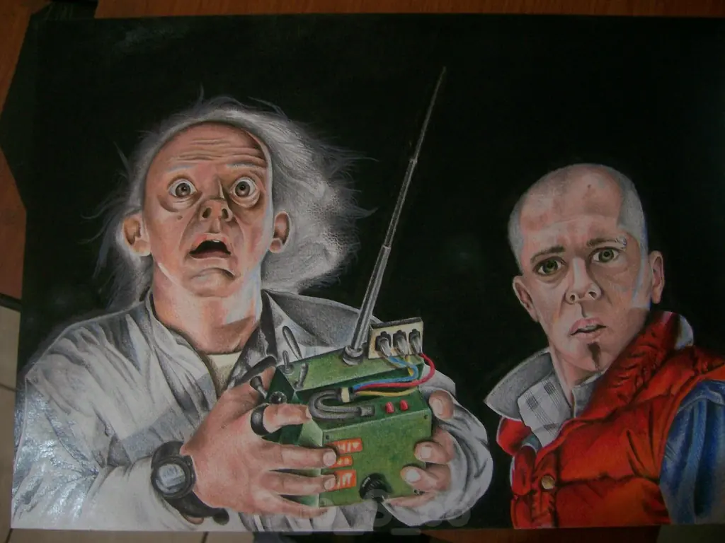 Voy a compartir mi ultimo trabajo, la idea en este dibujo era reemplazar a Marty McFly por mi, “Robarle una escena” creo que no debe haber persona aca a la cual explicarle quienes son Doc y Marty…