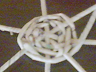 6.-así va quedando,no olvides conectar los palitos por las puntas para seguir tejiendo