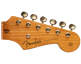 .-Este clavijero es el típico de las guitarras eléctricas y bajos, el sistema de fijación de las cuerdas es similar al del clavijero de la guitarra clásica.