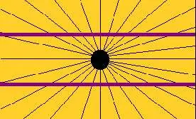 Aunque no lo parezcan, son rectas y totalmente paralelas. Lo que ocurre es que nos engaña la vista; las finas líneas del fondo que salen del círculo negro provocan una ilusión haciéndonos parecer que las dos líneas más gruesas se separan por la parte central.