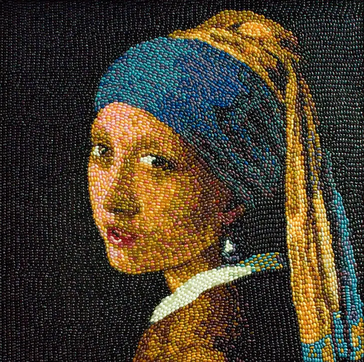 La artista estadounidense Kristen Cumings utilizó caramelos de colores para recrear algunas de las obras más reconocidas de la pintura mundial
