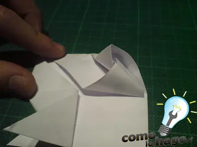 Ahora debemos tomar las puntas bajo el dobles recién hecho y los doblamos hacia afuera.