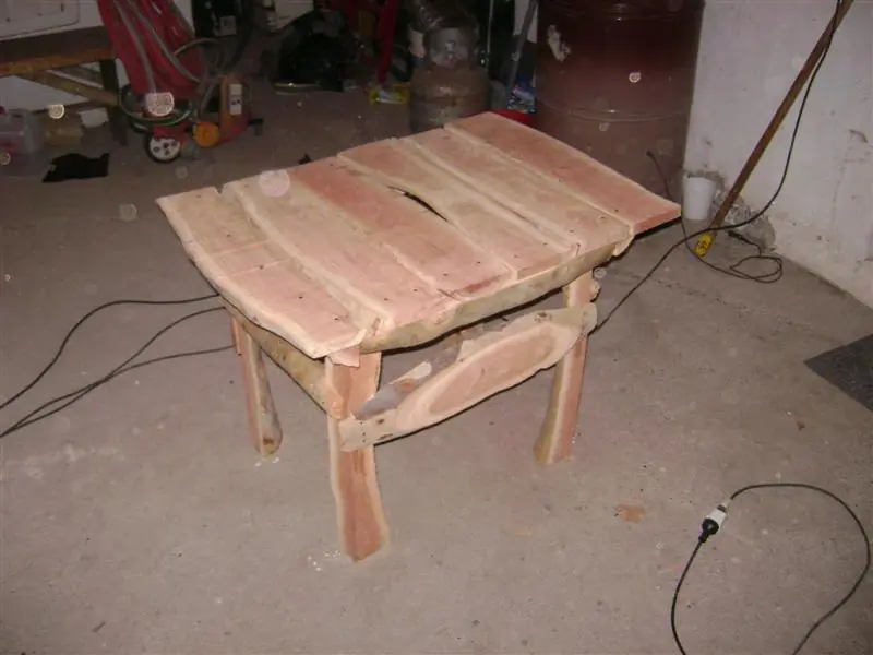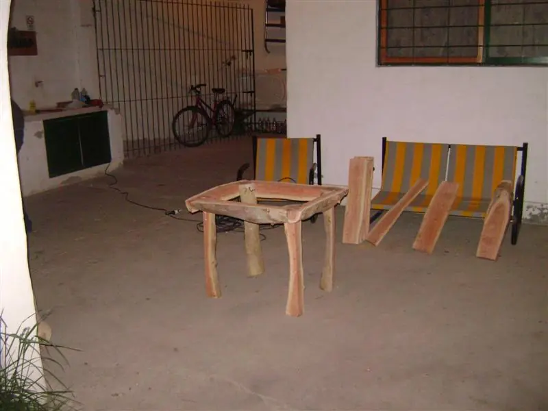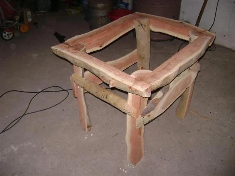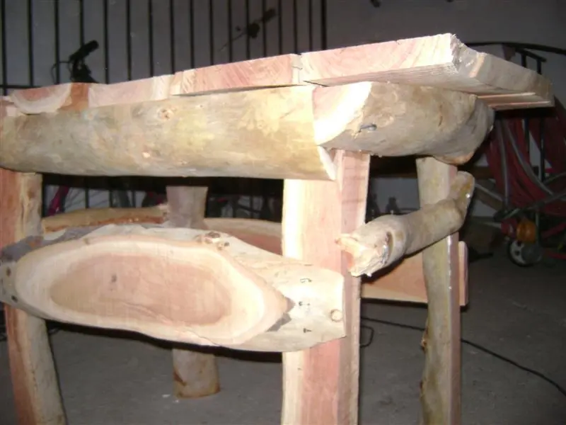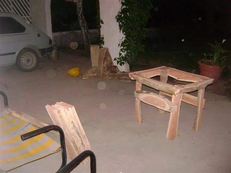 Nota: a los troncos finos les hice un corte en L para que encaje la mitad en la pata, queda mas prolijo pero no es esencial.