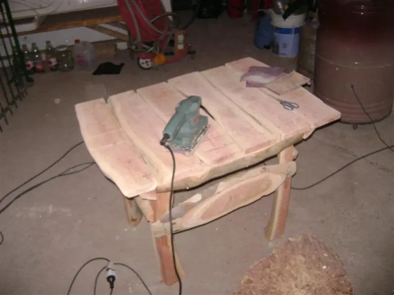 Como detalle final hay que barnizarla, especialmente porque va a ser una mesa de jardin para que no se pudra, ademas el barniz retarda el secado de la madera evitando que se agriete.