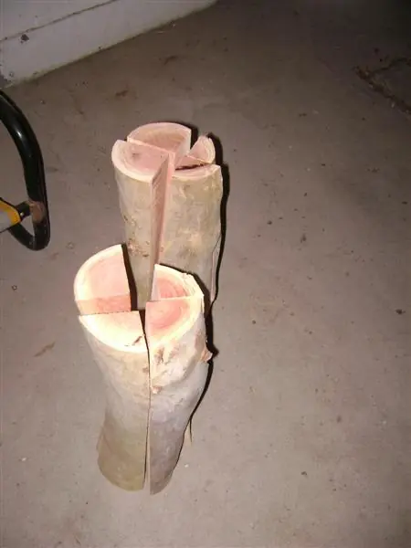 Ahora viene lo mas complicado: hay que cortar 2 de los troncos en 4 partes a lo largo y a los otros 2 hacerlos tablas (para esto se necesita una sierra sin-fin, si no la tienen pueden ir a una carpiteria a que se los corten, no les van a cobrar mas de $15)