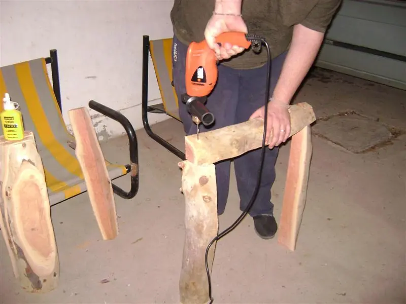 Ahora vamos a clavar las patas aprovechando las caras planas de los troncos cortados a lo largo.