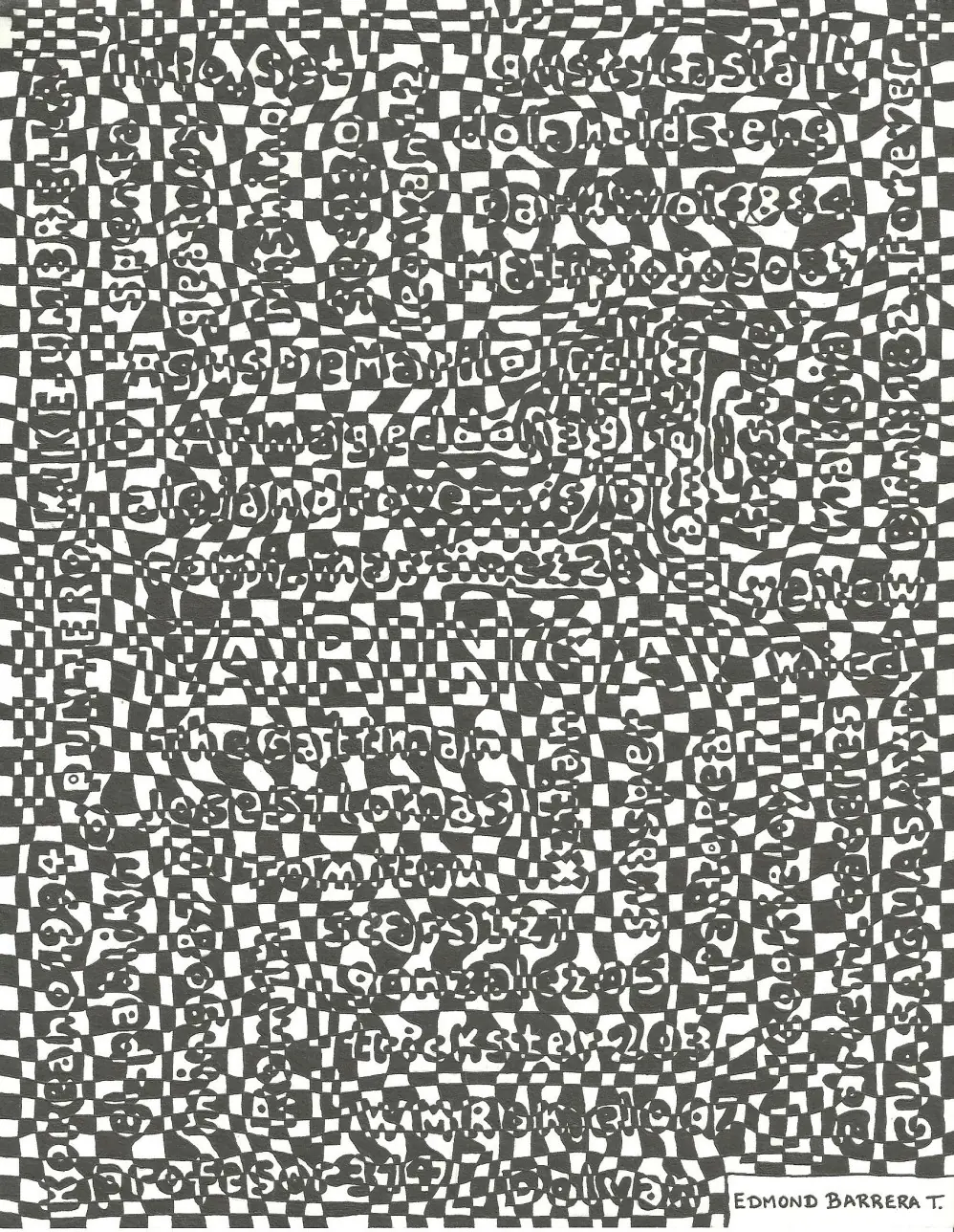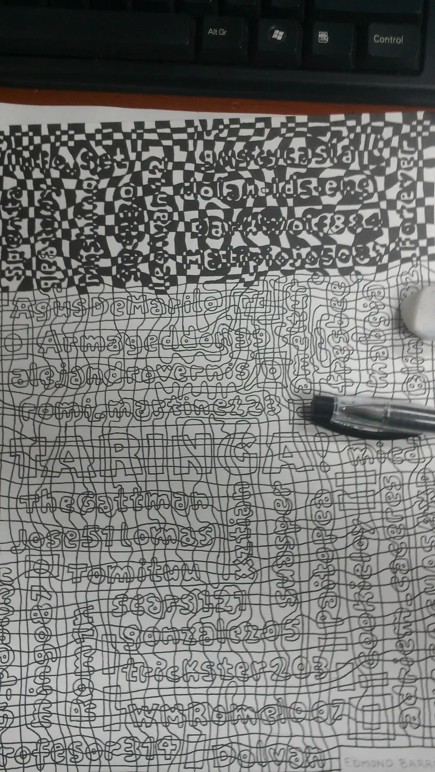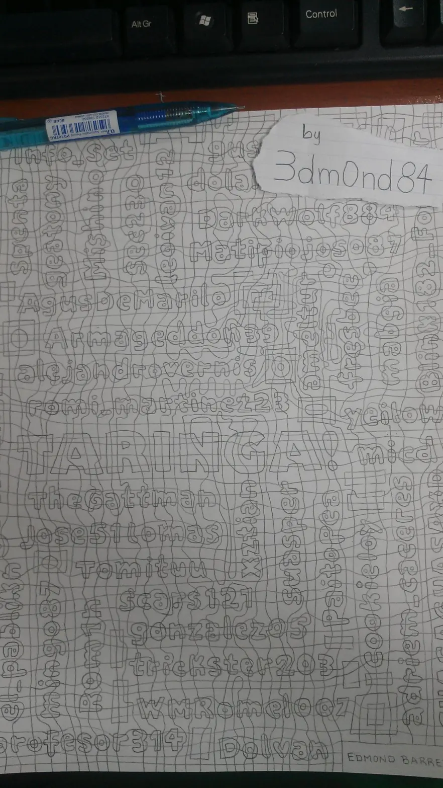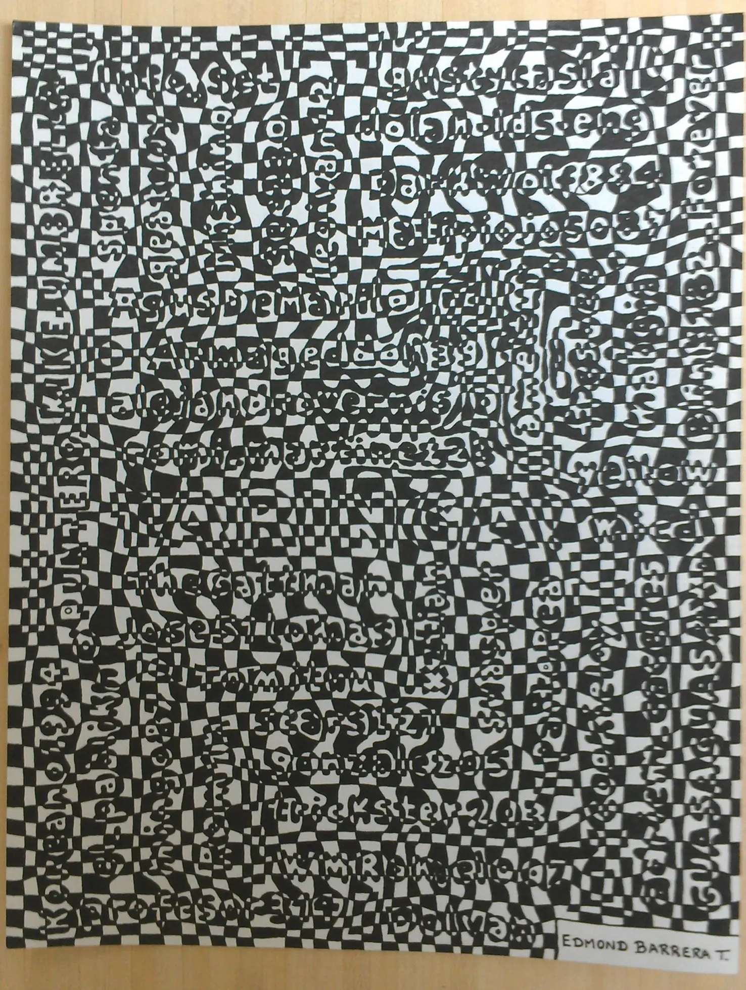 Hace mucho pasó por mi cabeza realizar un Dibujo tipo Ilusión Cafewall o Cuadricula, para luego mostrarlo por acá. Pero para hacerlo más emocionante quise dedicarlo a muchos buenos amigos buena onda de esta Comunidad y poner sus nombres dentro del Dibujo.