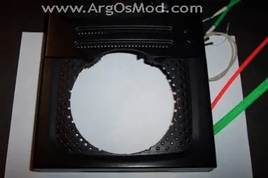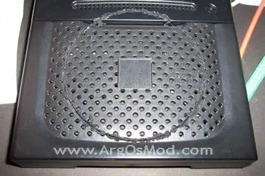 Para ello deberemos modificar el frente de nuestro gabinete, realizando el corte del mismo en forma circular, del tamaño del ventilador. En este caso es de 12cm y nos ayudaremos de un CD para marcar su contorno.
