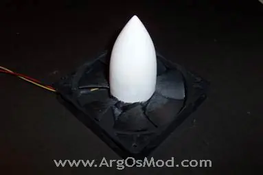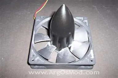 Veremos las dos maneras de realizar la turbina, primero la mas delicada es pegando la punta en el ventilador asegurándonos de que este bien centrado, podemos hacerles unas líneas y marcar bien el centro, cuando gire el ventilador si este esta bien centrado debemos ver siempre el punto sino veremos como forma un circulo. Luego de ser lijado lo pintaremos.