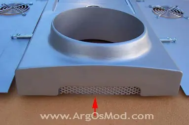 Nuestro frente al que le hemos puesto una chapa mesh para la salida del aire por la parte superior y pintado totalmente con las puertas laterales puestas y listo para ser colocado en su lugar