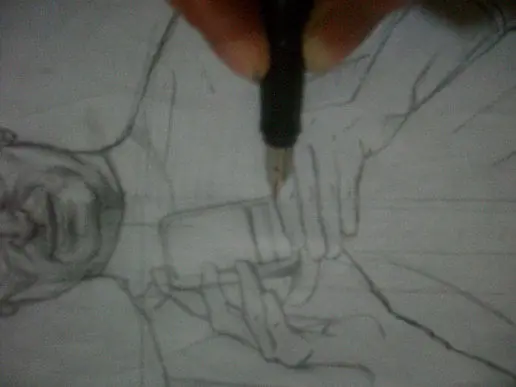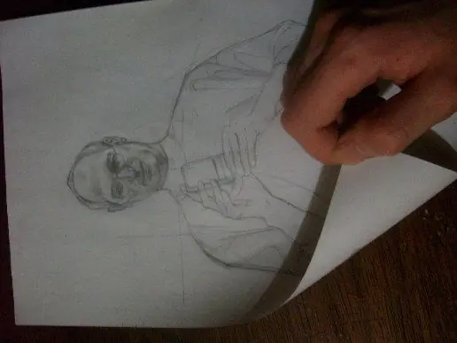 ▼Una vez terminado el boceto, se debe dar vuelta la hoja. Del lado en blanco de la hoja se comienzan a hacer trazos rapidamente por donde se encuentra la línea del dibujo del otro lado.
