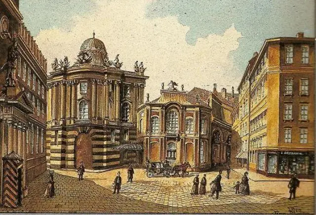 Aparentemente Hitler utilizó una fotografia para hacer este dibujo del Burgtheater.