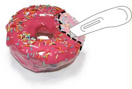 ninguna dona de homero estaria completa sin el tipico mordisco asi que ahora tenes que cortar el mordisco tratando de no desarmar mucho la rosquilla con una trincheta bien afilada