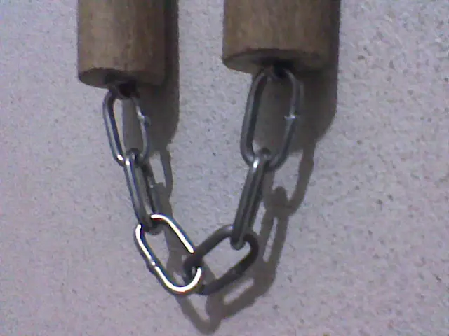 Luego comprobamos con la cadena, es importante que la parte del clavo que sobresale no sobrepase el diametro del palo.