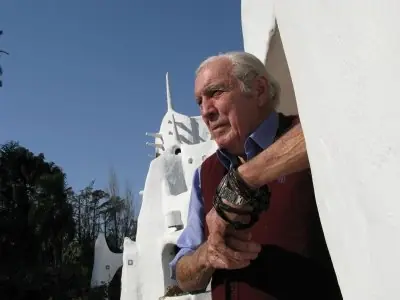 Corría el año 1958 y la desolación del paisaje, sin árboles ni caminos trazados, sin luz y sin agua, no frenaron su proyecto. La construcción inicial fue una casilla de lata, donde almacenaba puertas, ventanas y materiales para su futura casa. Luego, con la ayuda de amigos, levantó "La Pionera", su primer atelier sobre los acantilados rocosos. Era de madera, que el mar traía los días de tormenta y que él mismo se encargaba de recoger con la ayuda de los pescadores. En 1960 empezó a cubrirla con cemento y así siguió creciendo, sumando habitaciones como vagones a una locomotora. Dejando resbalar su imaginación al ritmo de los movimientos de las diferentes capas de nivel de la montaña, logró una perfecta integración de la construcción con el paisaje, sin afectar su naturaleza. Sin darse cuenta, con su cuchara de albañil llegó hasta el mar.