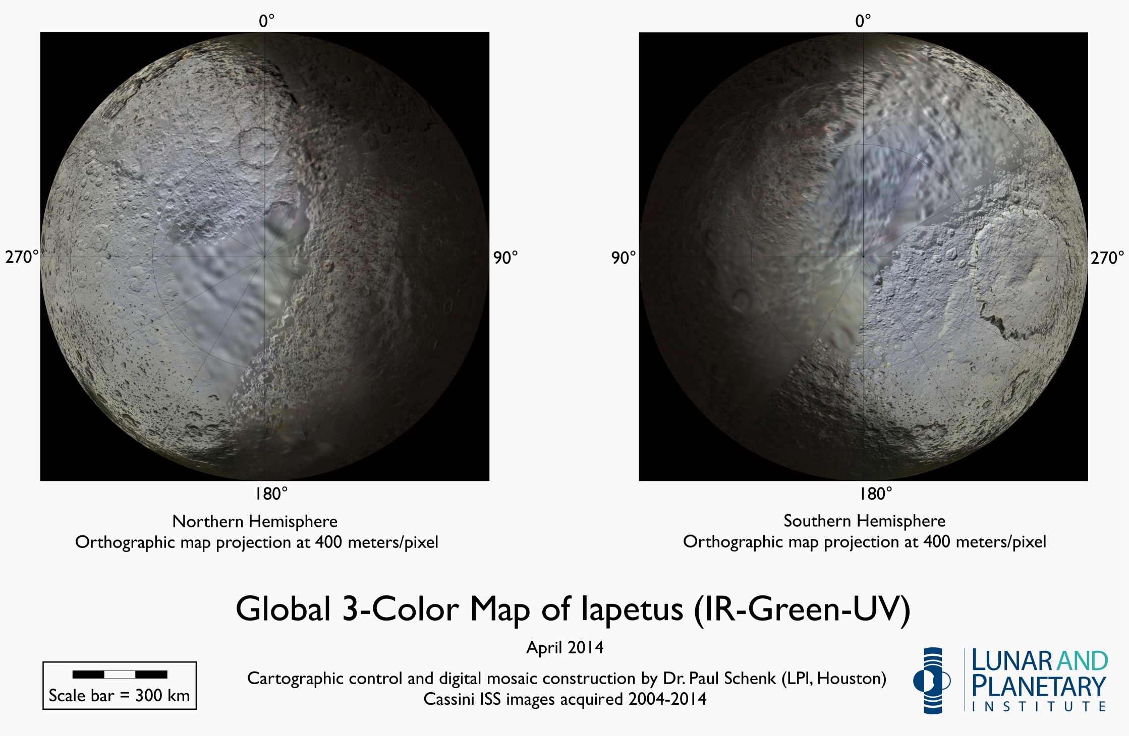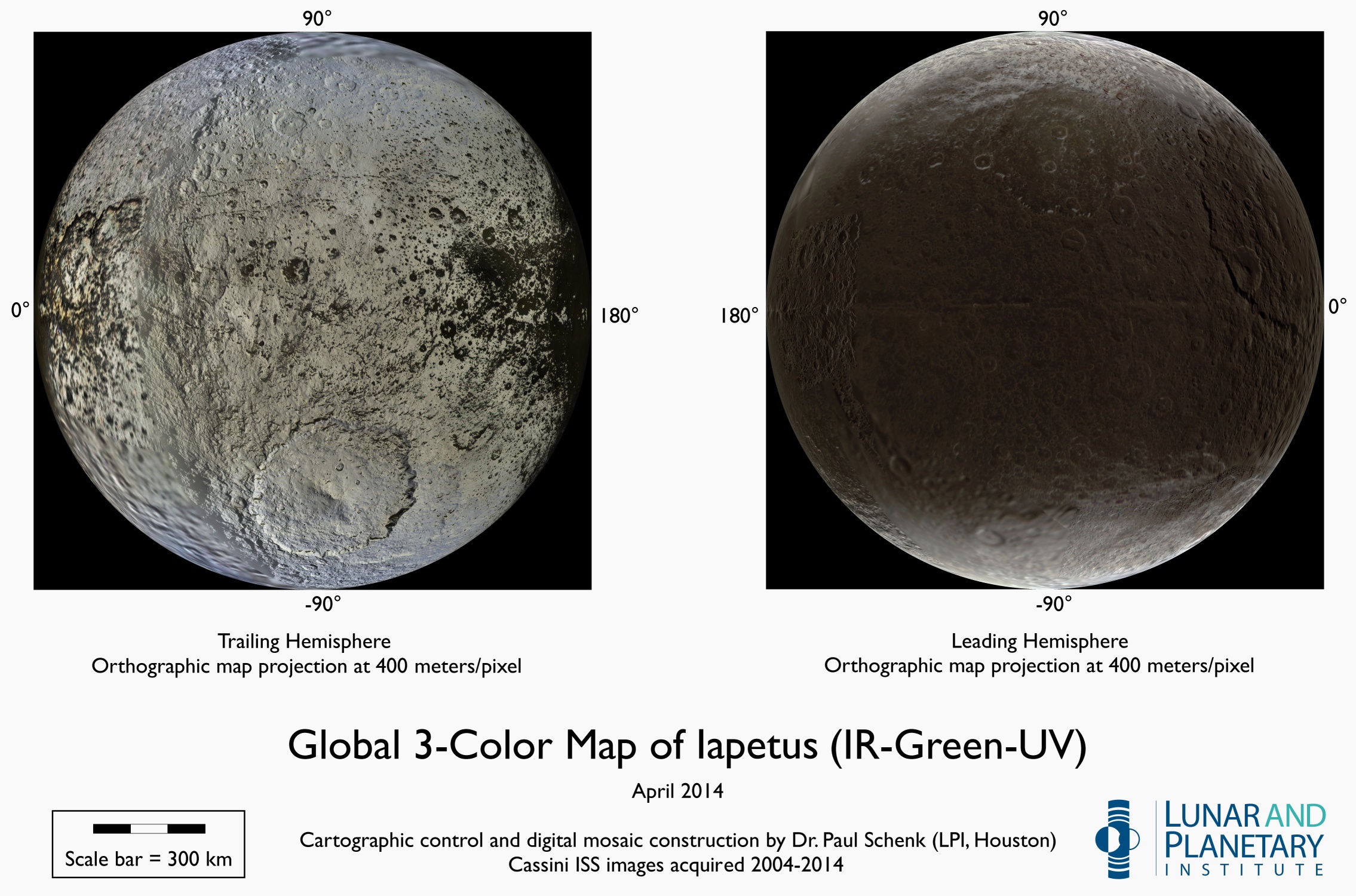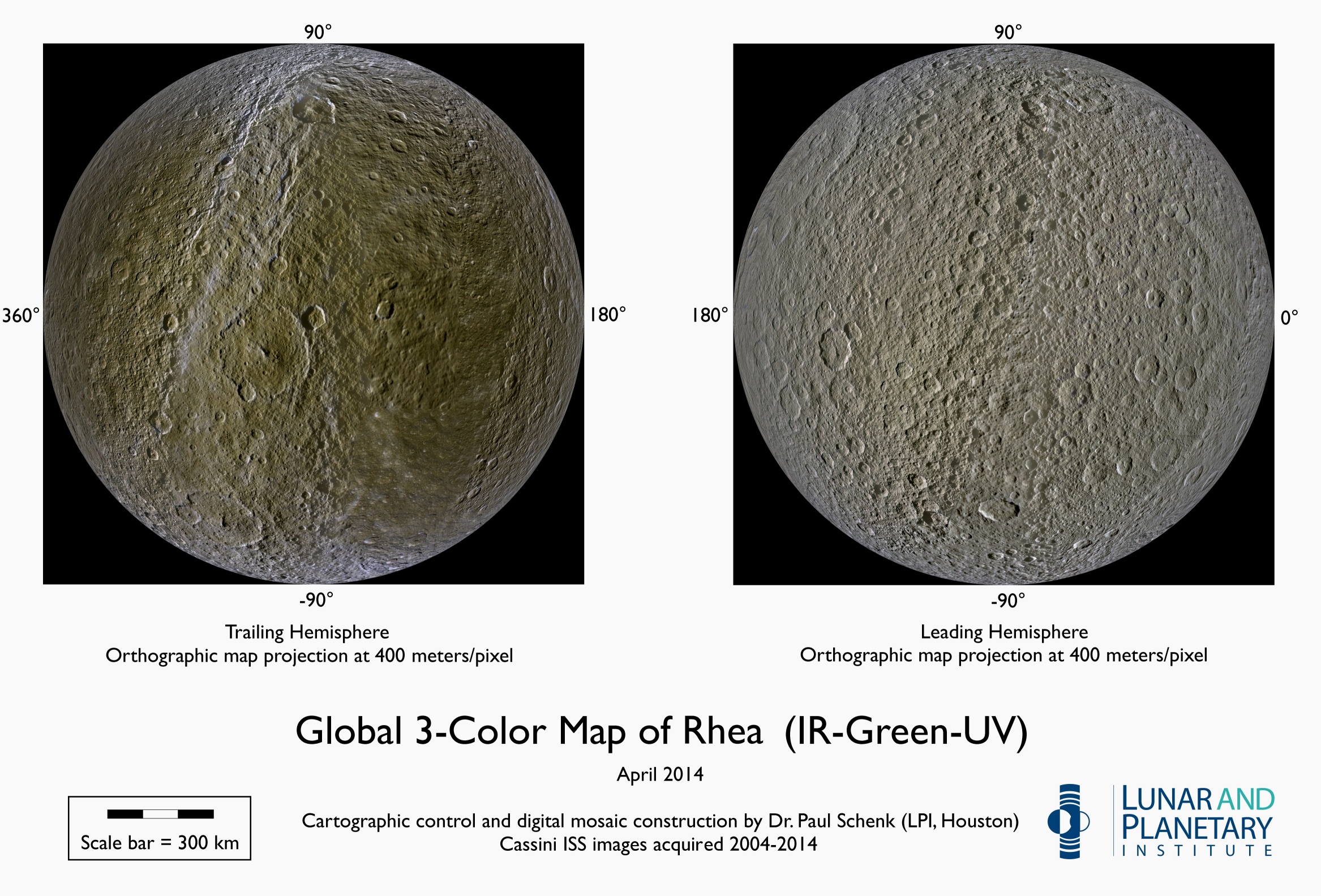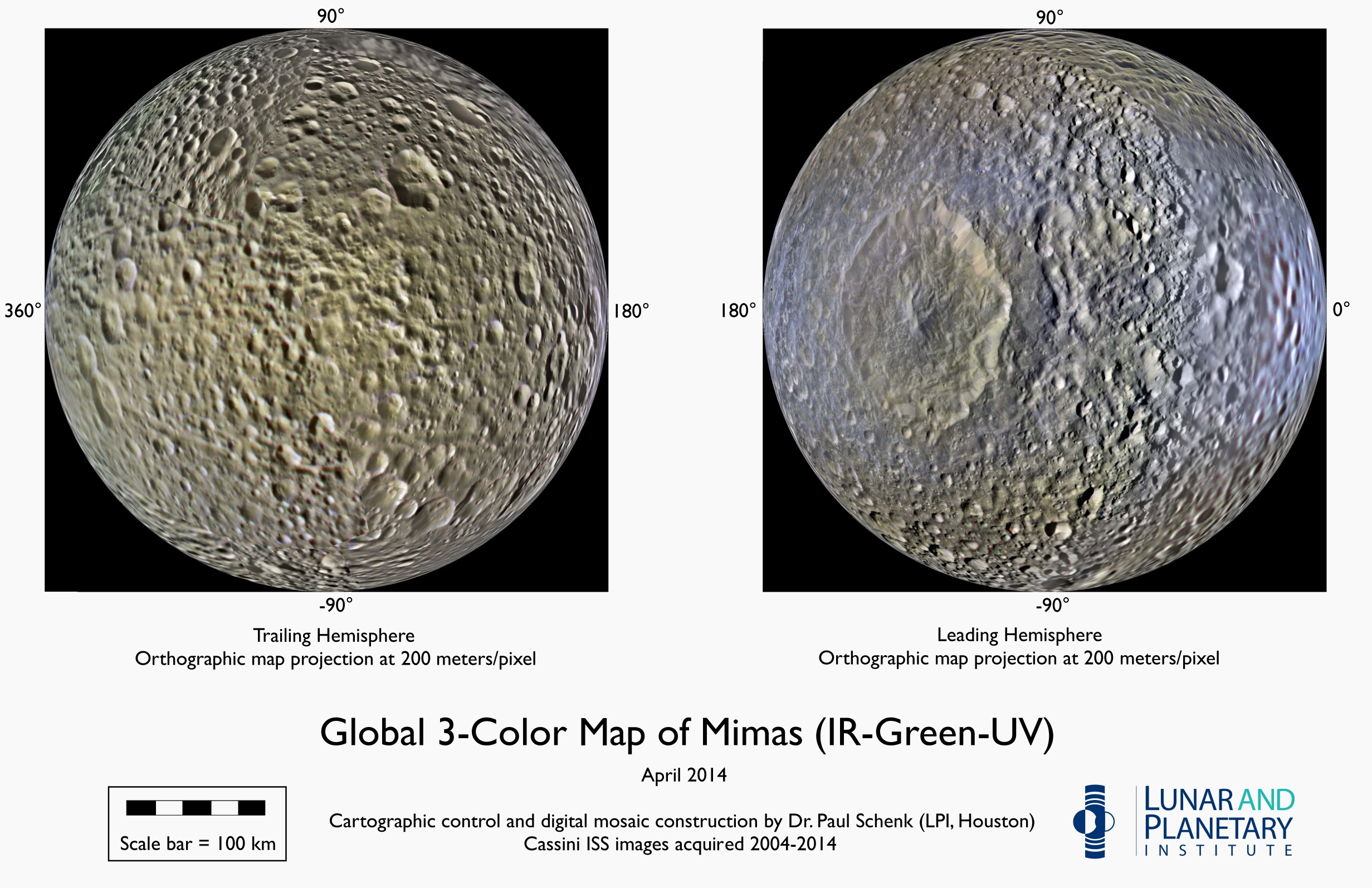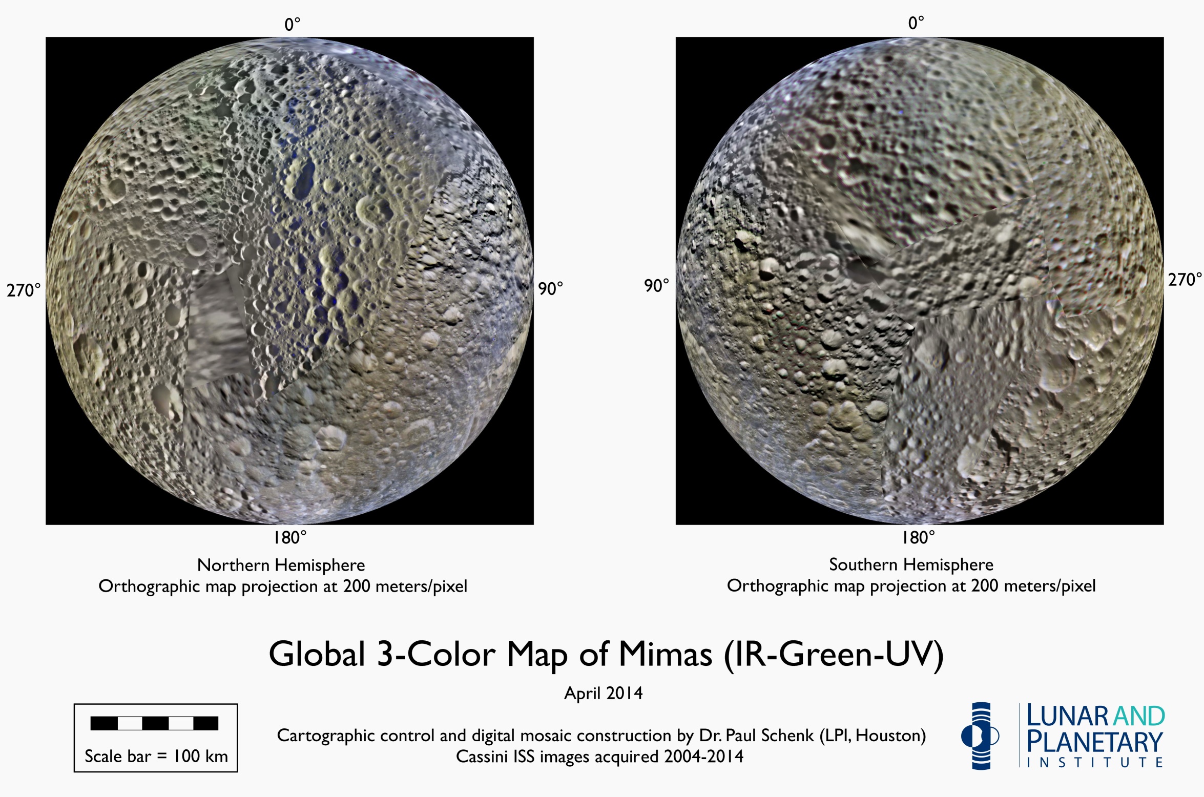 La NASA publica una serie de mapas en color de algunas de las lunas. Fueron creados con las imagenes tomadas por Cassini durante los 10 años de exploracion de la mision.