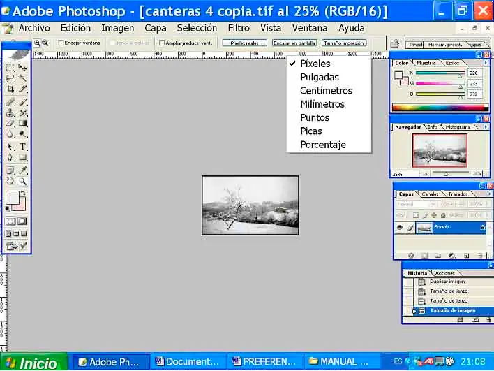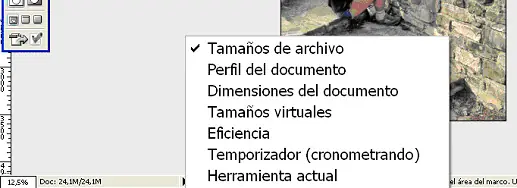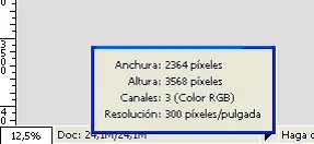 Aquí podemos observar como PS, por omisión nos informa del tamaño de documento actual y el tamaño que va adquiriendo según lo tratamos con PS. El formato es X/Y, donde el primer valor, es decir la “X”, nos dice el tamaño al abrirlo y el segundo valor la “Y”, el tamaño que va adquiriendo.