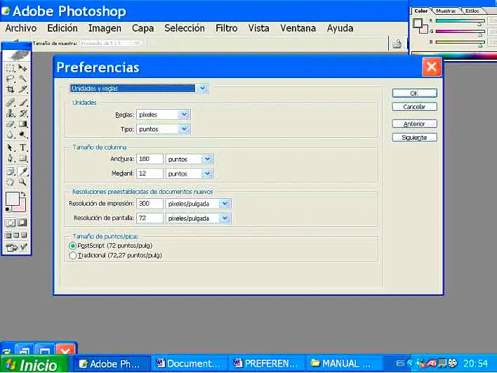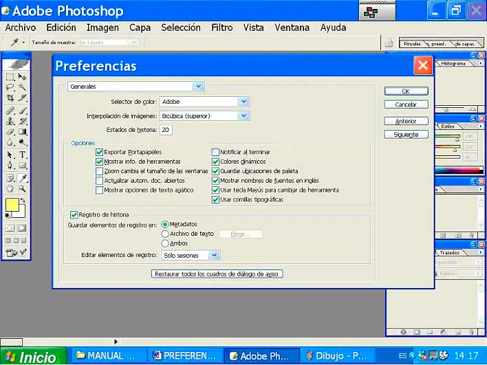 Como todo programa PS nos proporciona acceso a los ajustes fundamentales para adaptar el programa a nuestras necesidades personales.