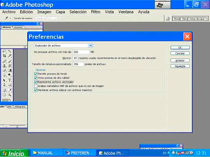 Con esta opción indicamos a PS el tamaño máximo de archivo que puede ser procesado en el Explorador de Archivos.