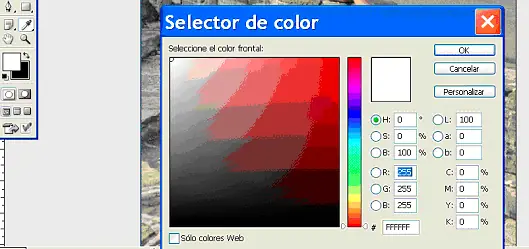 Si realizamos clic en el icono de color frontal, nos aparece el Selector de colores, seleccionamos el deseado y pulsamos intro. Ver figura 1.5.