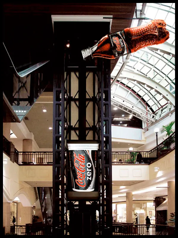 Coca Cola promocionaba sus nuevas botellas con nuevo grip para poder agarrarse más fácil. Lo que hicieron fue colocar la gráfica con VELCRO, cuando los peatones pasaban quedaban “pegados” a la publicidad. Tuvo un gran impacto y éxito