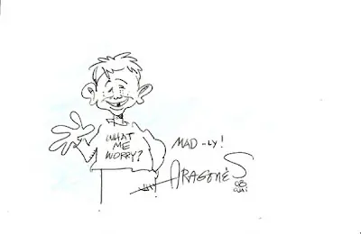 Aragonés ha participado en cada edición de MAD desde 1963 excepto una (extraviada por el correo). Adicionalmente, tiene su propia sección llamada "MAD da un vistazo a..." ("A MAD Look At....", en inglés).