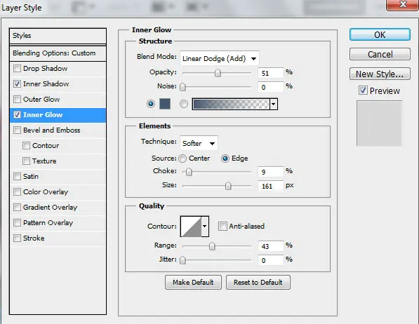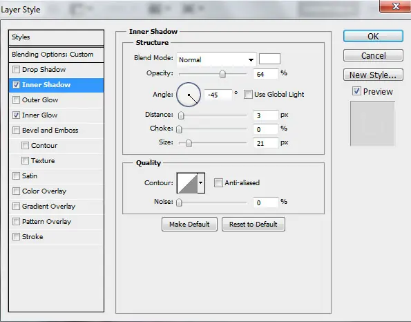 Establecer relleno a 0% para esta capa y haga clic en Añadir un estilo de capa icono de la parte inferior del panel Capas y seleccione Sombra interior .