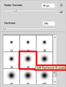 Seleccione la mecánica suave del cepillo de la herramienta Pincel (B) .