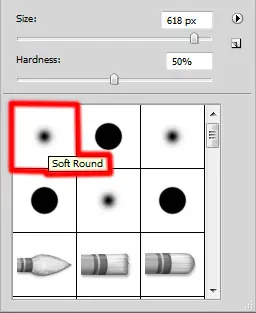 Ahora tenemos que pintar en la máscara (donde hemos utilizado Filtro> Interpretar> Nubes ) con suave Ronda pincel de color negro (conjunto de opacidad a 20% en la barra de opciones ) para ocultar las zonas próximas de la misma manera se demuestra a continuación:
