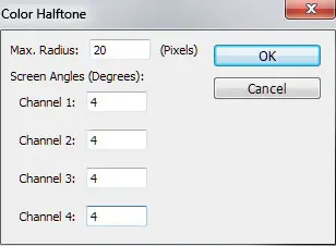 Seleccione la capa con los pinceles al siguiente filtro Filtro> Pixelizar> Semitono de color .