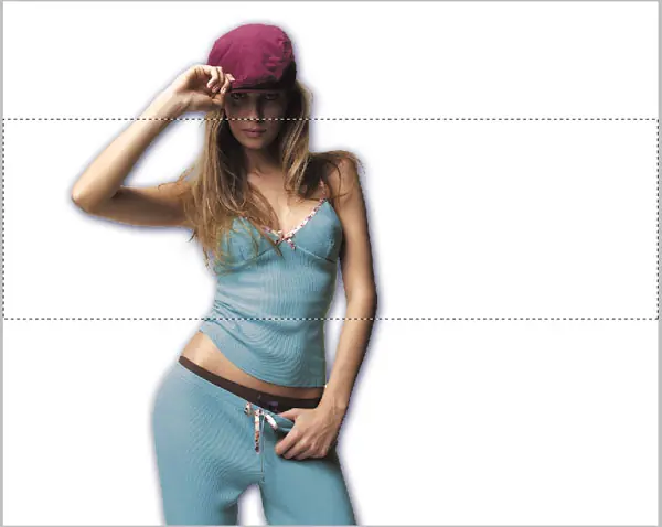 Crear una capa nueva y hacer una selección, la aplicación de la herramienta Marquesina rectangular (M) . Coloque esta capa debajo de la niña en una.