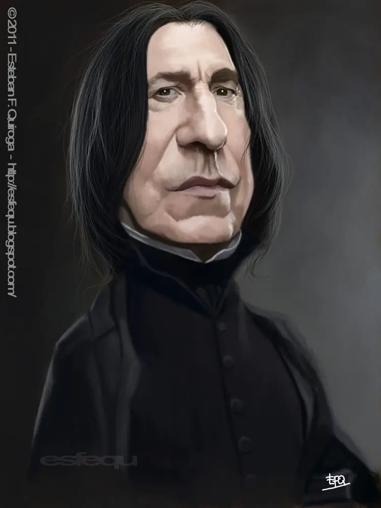 [quote]Severus Snape es un personaje ficticio en las series de Harry Potter, escritas por la autora inglesa J. K. Rowling. Su primera aparición fue en Harry Potter y la piedra filosofal, novela publicada en 1997. En las películas, es interpretado por Alan Rickman.[/quote]