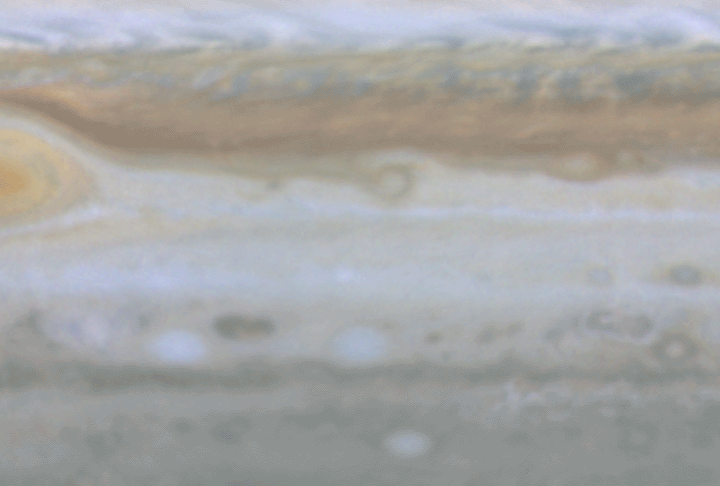 Clip 3: "Bolas" deslizandose al este de la Gran Mancha Roja