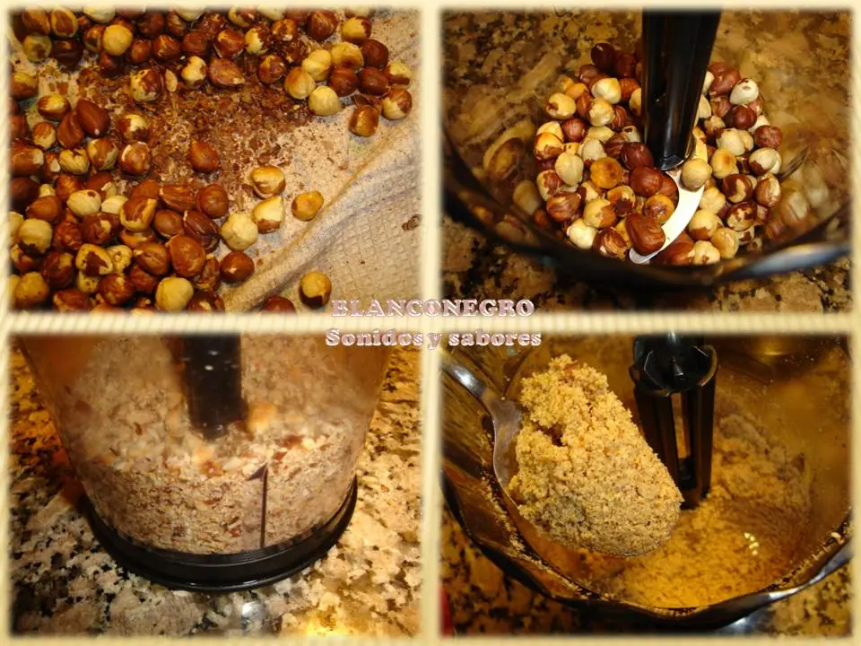 Desechar los trocitos de piel que se despreda y moler las avellanas en un mixer o licuadora potente, hasta lograr una textura arenosa.