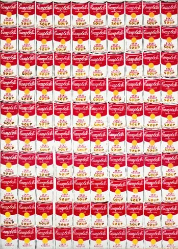 El Pop Art, se basa en esa sociedad y utiliza las imágenes, los nuevos objetos producidos por la industria, para elevarlos a la categoría de arte. De ahí que, Warhol tiene en sus obras: latas de sopa, tazas, cajas de detergente, vasos, pistolas, máquinas, objetos de uso o imágenes que la gente consume a través de los medios de comunicación de masas.