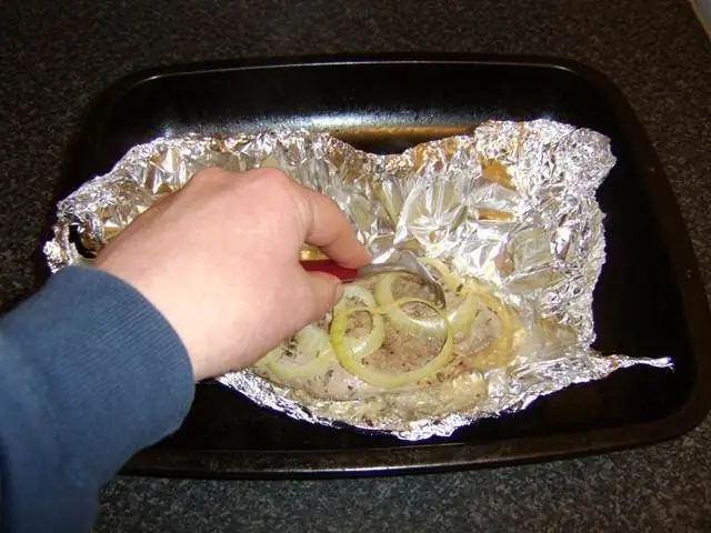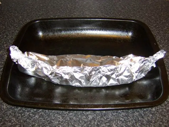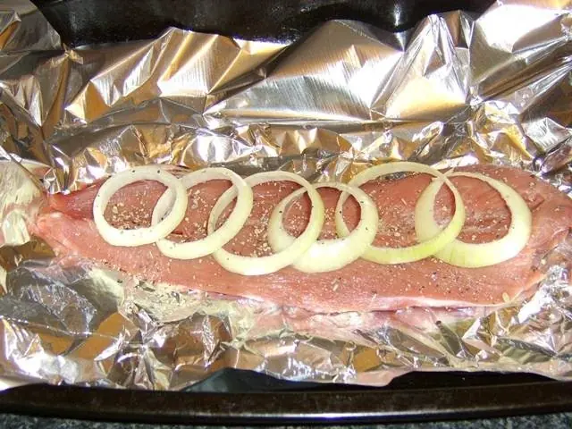 El lomo de cerdo debe estar cuidadosamente envuelto en papel aluminio para formar un paquete sellado, pero flojo. A continuación, se debe colocar en la parte superior del horno durante 25 minutos.
