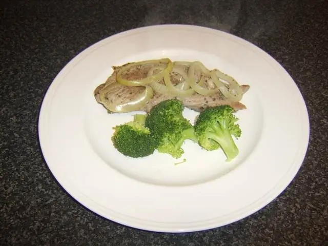 Cuando el lomo de cerdo ha gozado de un descanso, entonces puedes salarlo si lo deseas, y se sirve con una porción de verduras o cualquier otra guarnición. El brócoli es una excelente opción en este sentido, pero debe tenerse en cuenta que el brócoli es un vegetal desagradable si se sobre cocina. Alrededor de 8 a sólo unos minutos en agua hirviendo y salada es más que suficiente.
