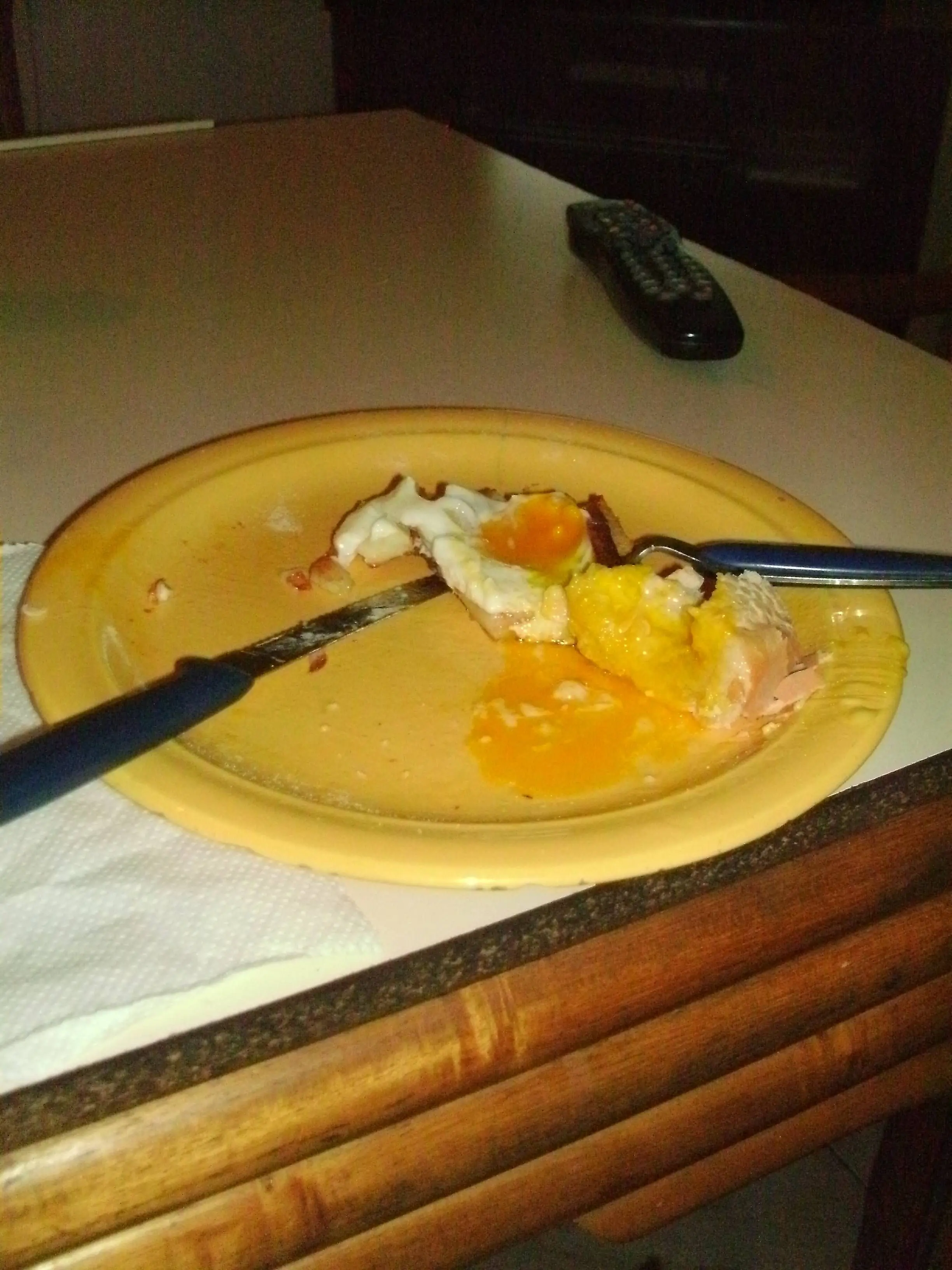 Ahhhh yo siempre dejo la parte del huevo frito al final pero por que me plaze. Lo mas rico a lo último..