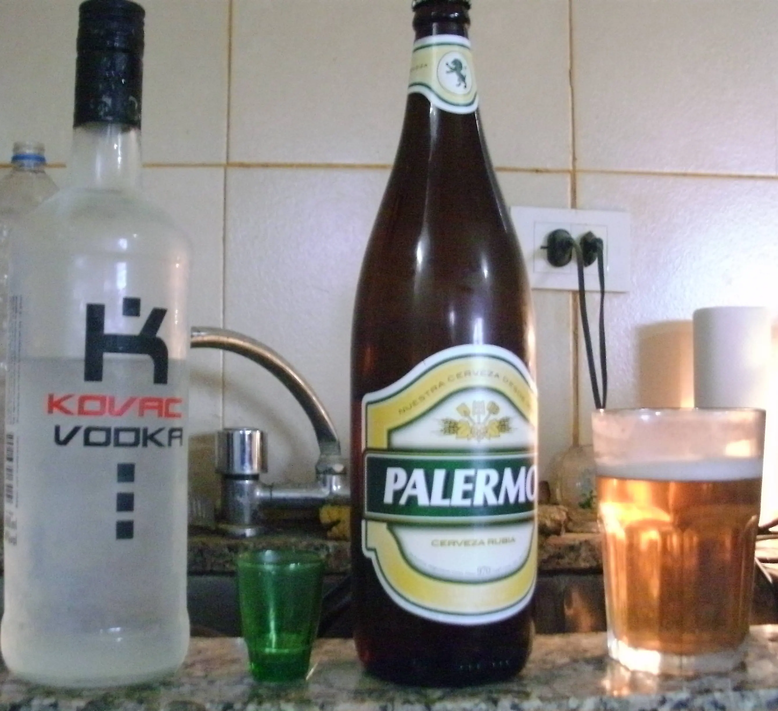 Yo hoy elejí uno de mis cócteles preferidos: Cerveza con un vasito de vodka adentro. No es para nada fuerte.