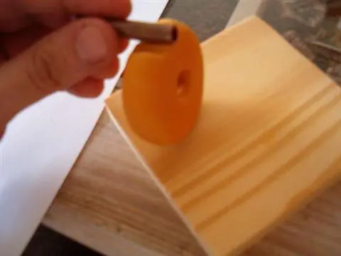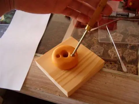 Ahora con la herramienta adecuada, hacer los hoyos que servirán para colocar los ojos.