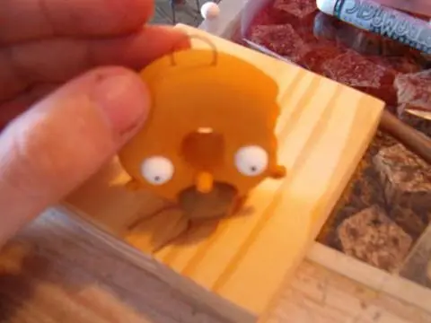 El pelo de Homero será de alambre de cobre. Corta dos pedacitos con una pinza y colócaselos.