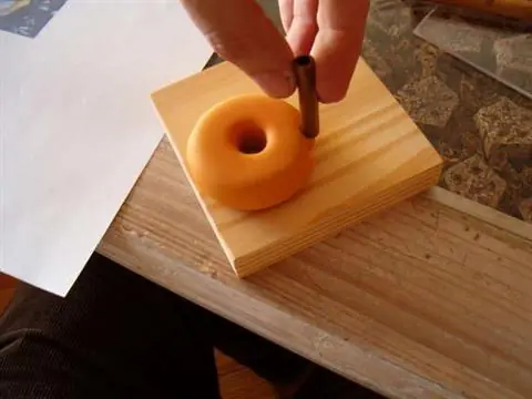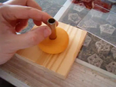 Para el orificio central deberás conseguir algún tubo de apróximadamente 1.2 cm de diámetro y hacer el agujero.