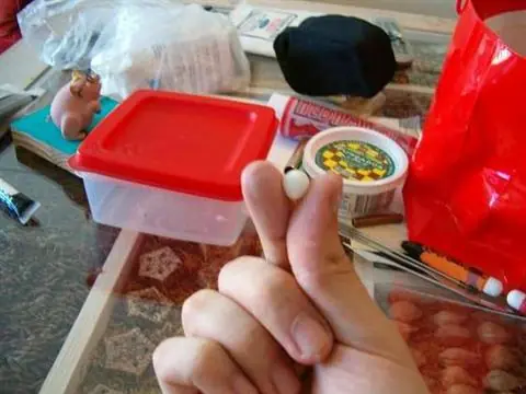 Toma un trozo de porcelana fría y ponle un poco de témpera blanca, luego amásala bien.