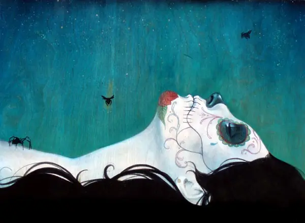 Su obra está muy influída por el culto a la muerte tan característico de México.