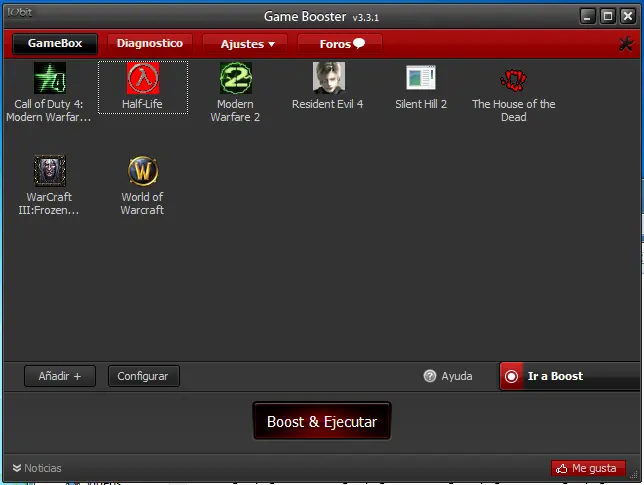 Selecciona el juego que quieras iniciar con esta utilidad y da click en Boost & Ejecutar.