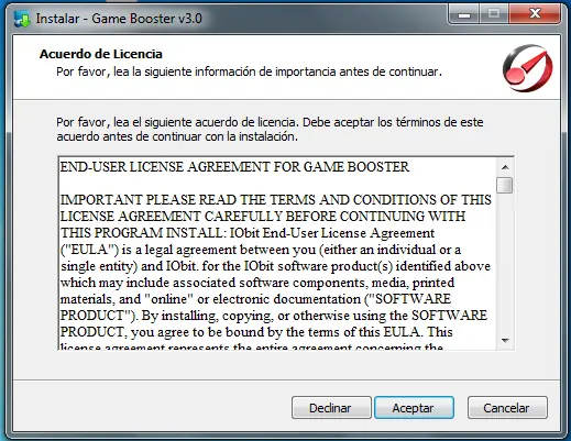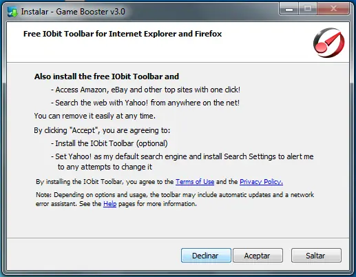 Al terminar nos Preguntára si queremos Instalar la Barra de Herramientas de IObit, le damos Declinar.