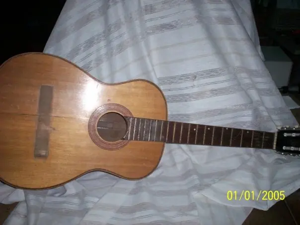Un dia en la casa de mi novia, mi suegra estaba limpiando su garage donde hay montones y montones de cosas. Una de esas cosas era una guitarra criolla de aprox 20 años ( no creo q tenga valor).