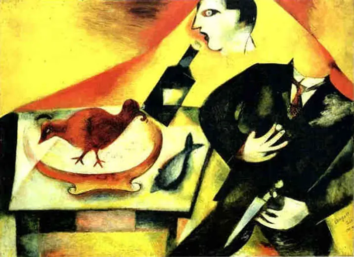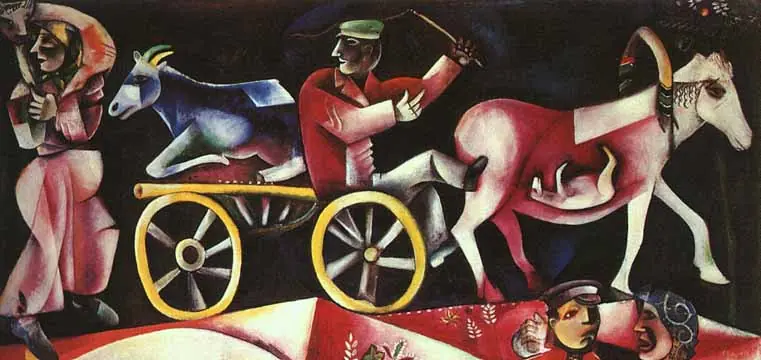 En Chagall se aprecia un sentimiento de indiferencia, de pérdida de respeto por la realidad, una rebelión en contra de sus leyes, el producto de todo esto es un universo en el que la fantasía ocupa el primer lugar. Su deseo es desordenar, modificar la realidad, dispersarla en todas direcciones.