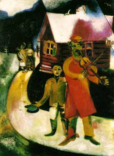 Los cuadros de este periodo rebosan de recuerdos, su tan añorada niñez cobra un protagonismo absoluto. Como el mismo Chagall reconoce, la infancia es un río en el que le gusta sumergirse, y al hacerlo nos descubre un universo mágico lleno de isbas, lámparas de petróleo, vacas, samovares, velas y violinistas como su tío Neuch que aparece en muchos de sus cuadros; otrora elementos reales y cercanos, y ahora personajes de sus coloridos cuentos.
