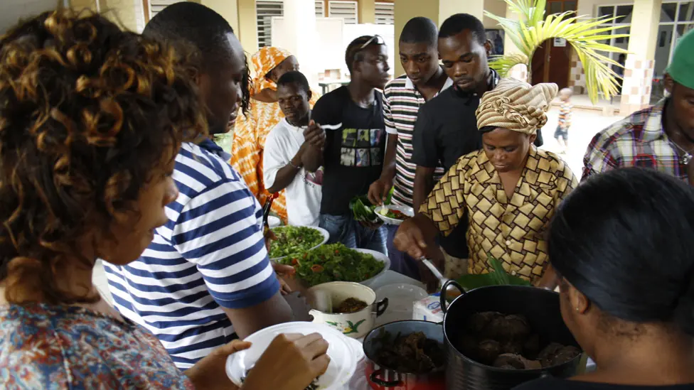 Estos son bubi de Moka, un pueblo en el centro de Bioko. El Centro Cultural Español de Malabo dedicó una semana a su cultura. Las lenguas oficiales de Guinea Ecuatorial son el español y el francés y las lenguas indígenas principales son el fang, el bubi y el pichi, una variante del inglés criollo traído de Sierra Leona.